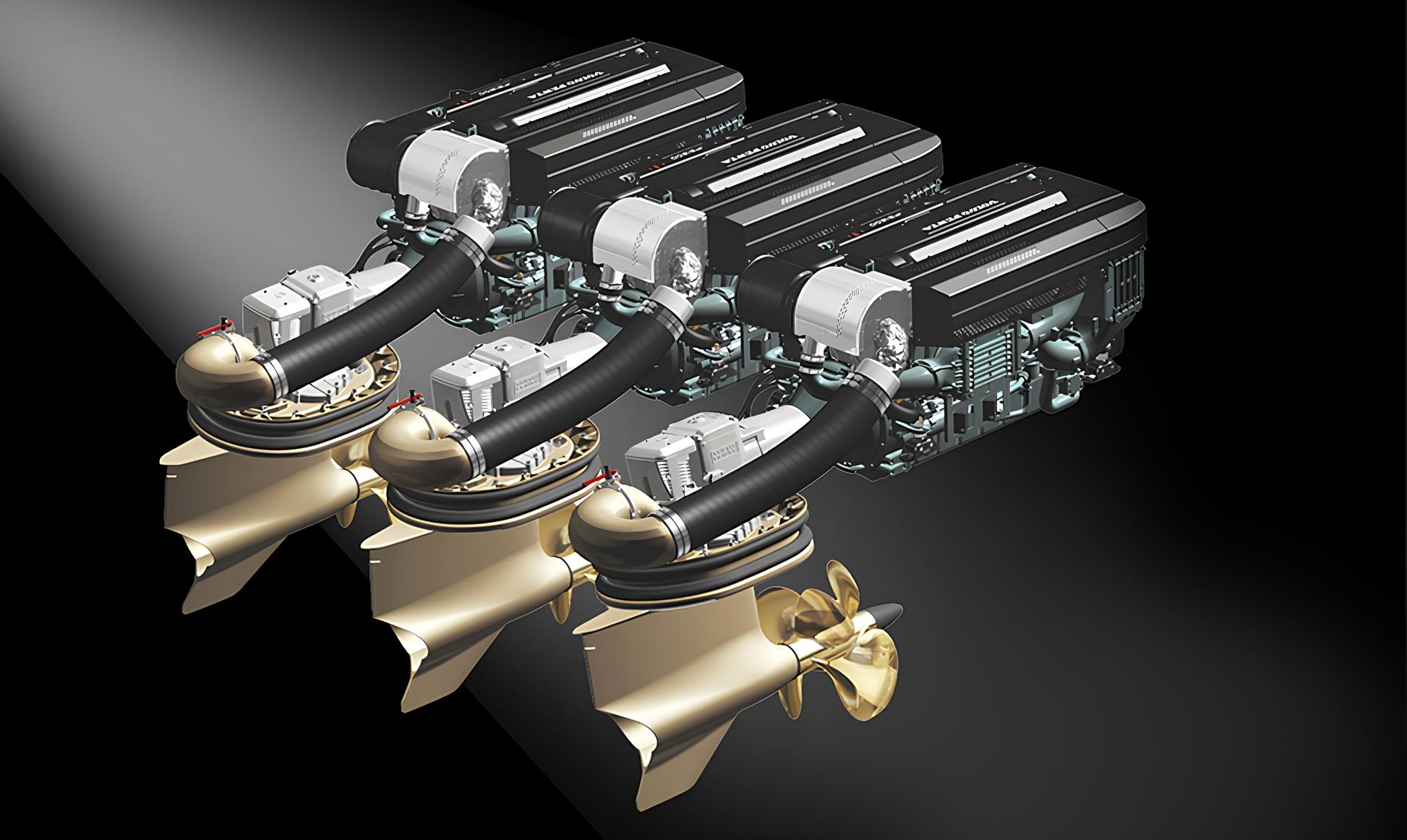 4 подводных огня LED по 7000 лм (2 на кормовом транце + 2 по бортам ближе к корме).