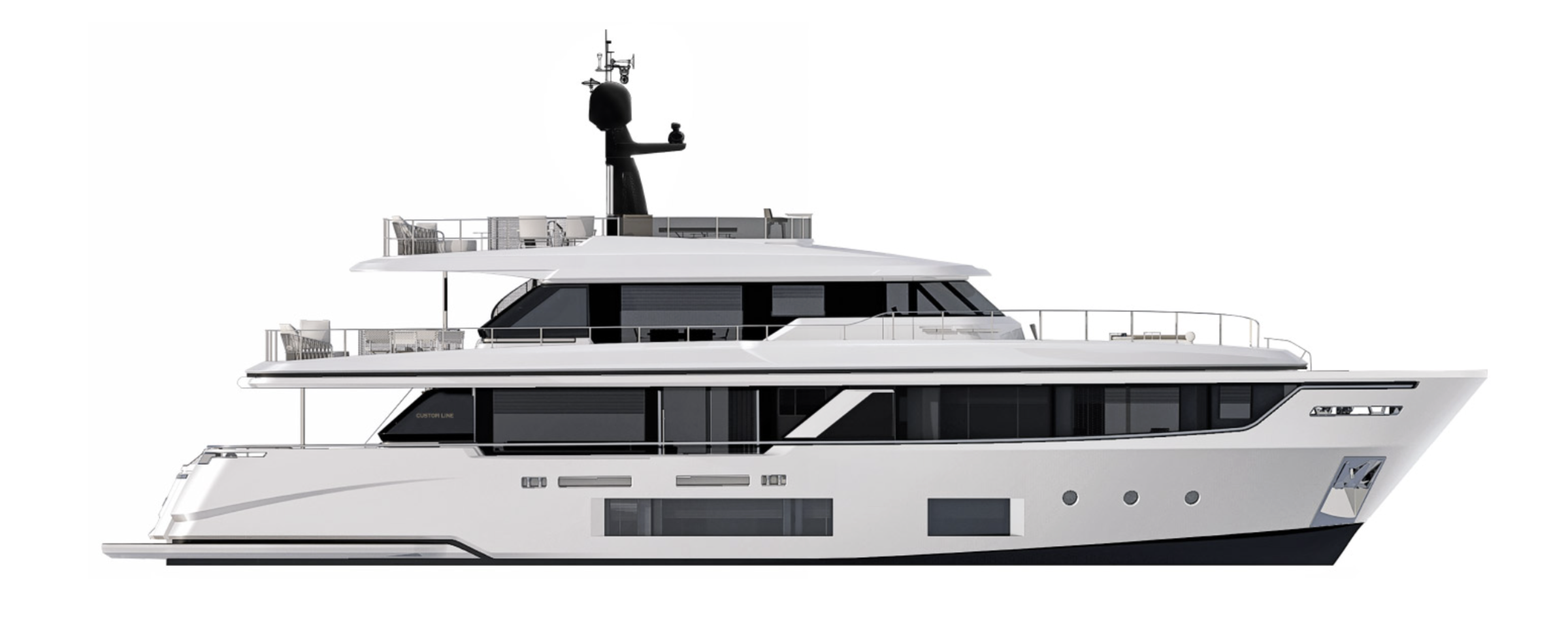 Custom Line Navetta 30 - это моторная яхта длиной 28,43 м, построенная в 2023 году, которая воплощает идеальное сочетание революционного дизайна и просторных жилых зон. С корпусом из стеклопластика и двумя двигателями MAN V8-1000 по 1000 л.с. каждый, Navetta 30 обеспечивает плавный и стабильный ход с крейсерской скоростью 12 узлов и максимальной скоростью 14,5 узлов.