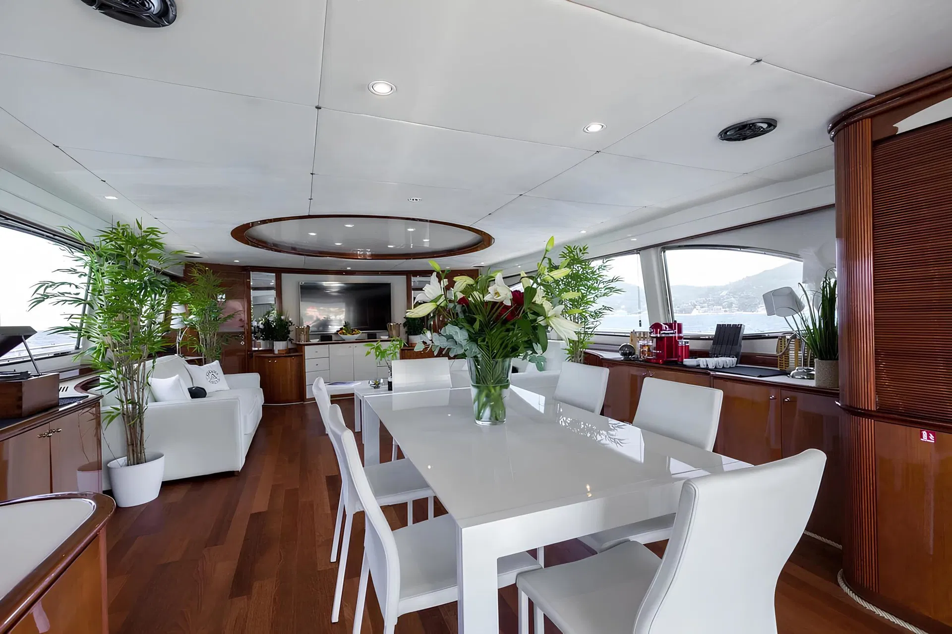Просторный главный салон с зонами отдыха и обеденной зоной