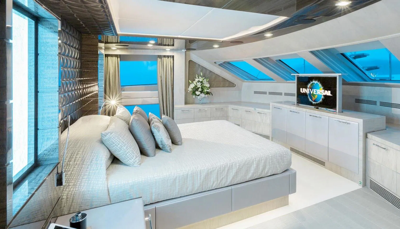 Мастер-каюта во всю ширину корпуса на главной палубе с панорамными окнами