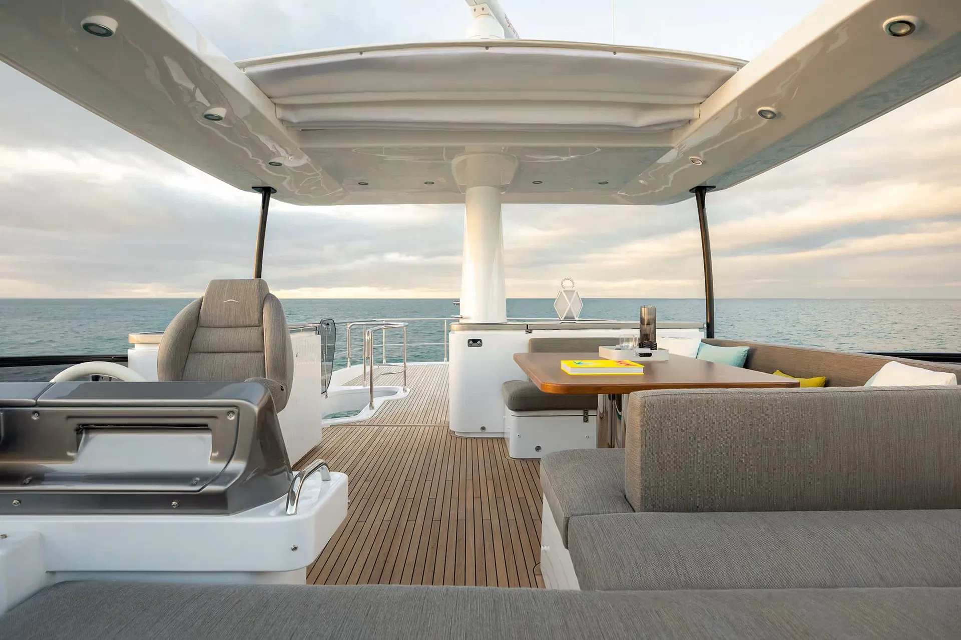 Флайбридж с хардтопом, обеденным столом, шезлонгами и вторым постом управления
