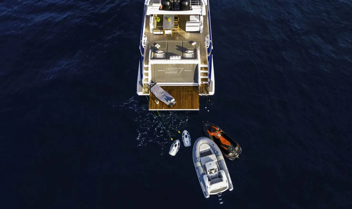 Большая плавательная платформа и гараж для тендера и гидроцикла