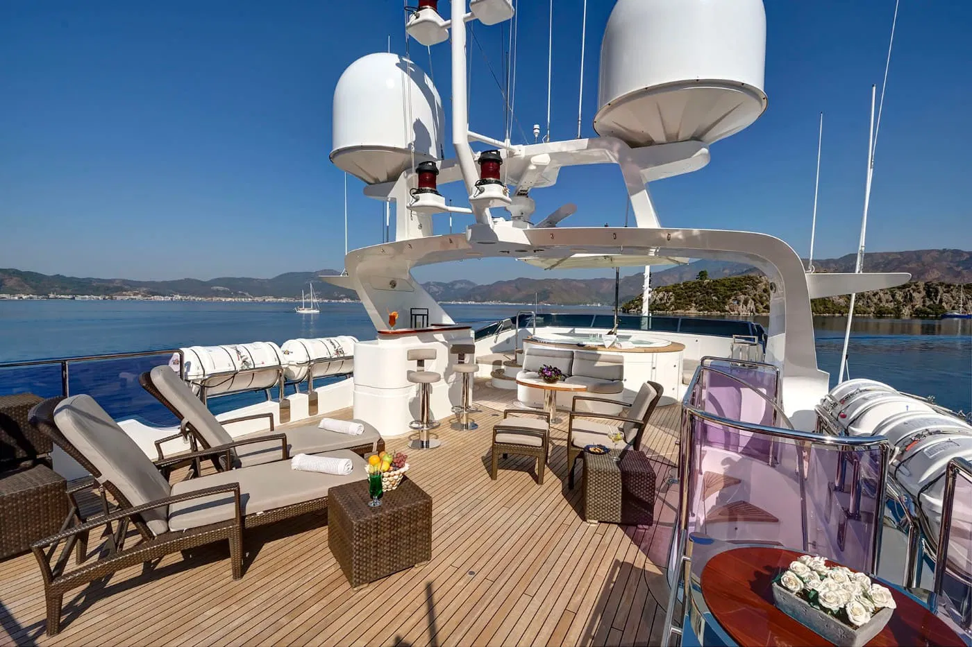 Джакузи на сандеке с шезлонгами