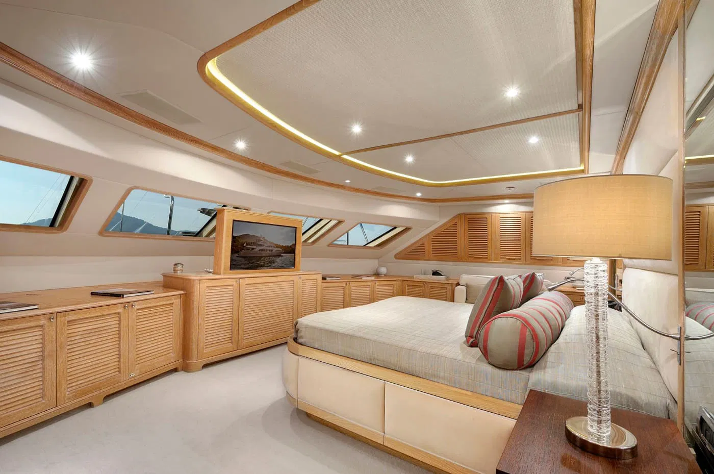Мастер-каюта во всю ширину корпуса на главной палубе с отдельным кабинетом