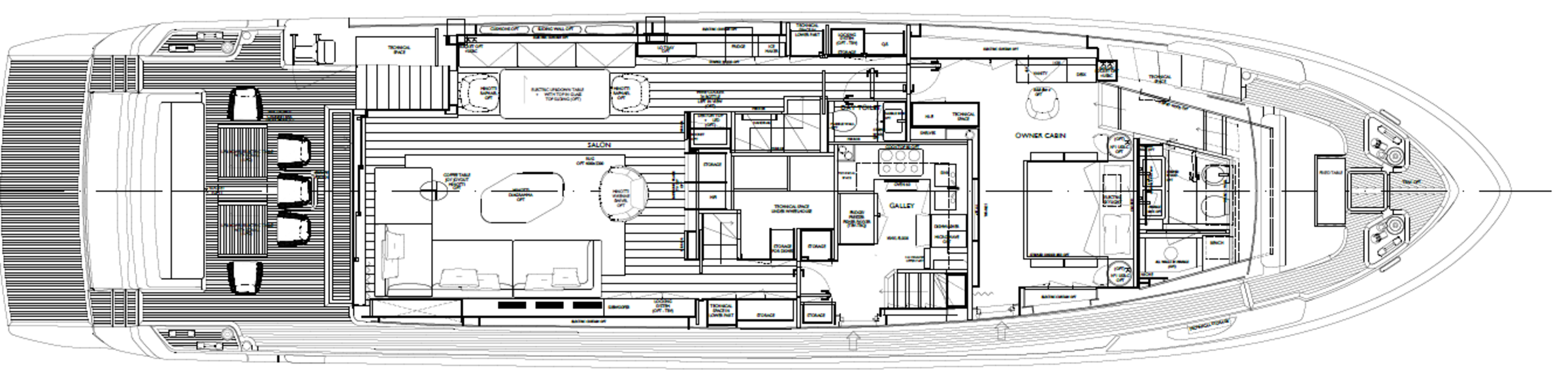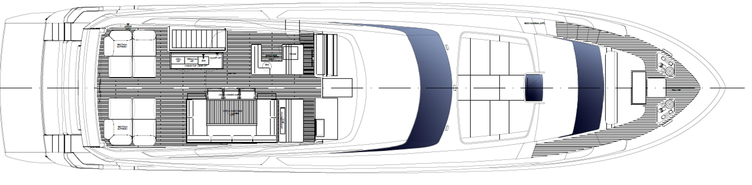 Прямое соединение между флайбриджем и носовой частью SUITUзавершается просторной зоной для загоарния, которая является неотъемлемой частью дизайна яхты.