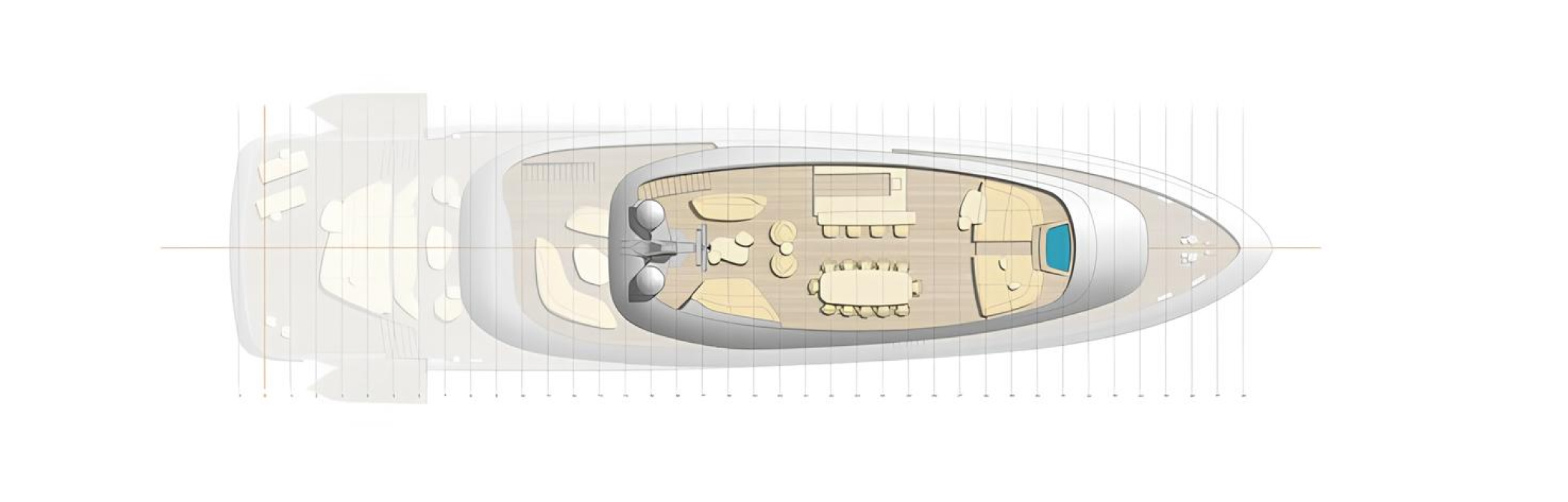 Her design features clean, flowing lines and balanced proportions, with a strong emphasis on outdoor living. Teak decks and Awlgrip exterior coatings ensure durability and long-term resistance to the marine environment.