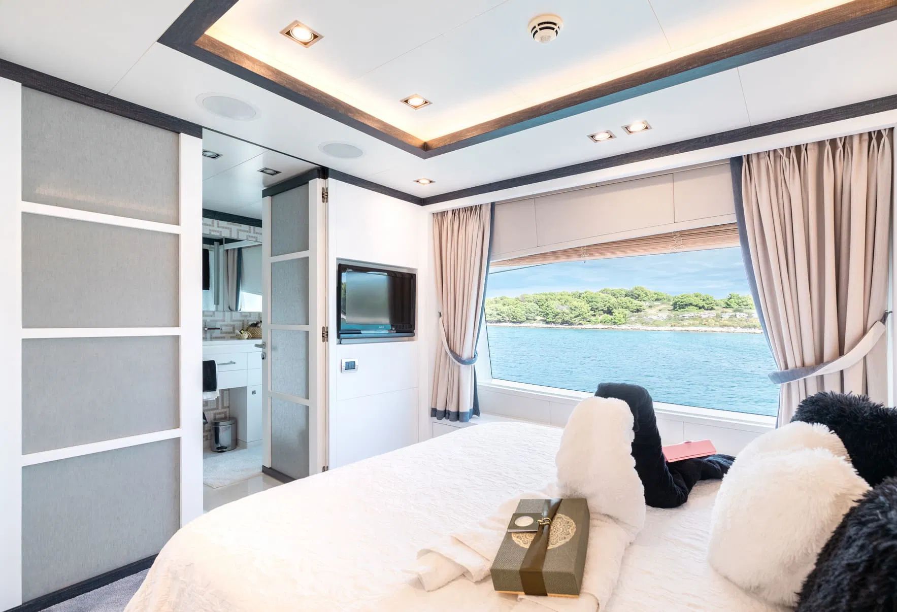 Full-beam master cabin on the main deck with direct access to a private deck