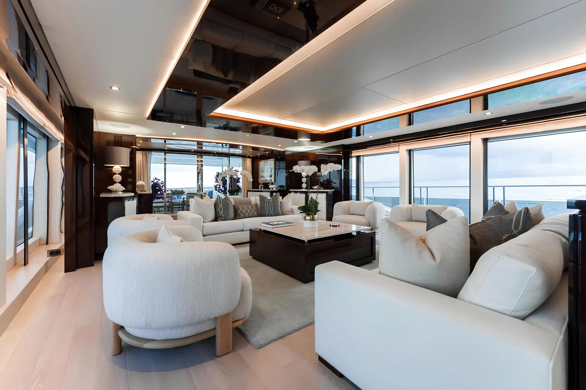 Two interior salons located on the main deck and upper deck