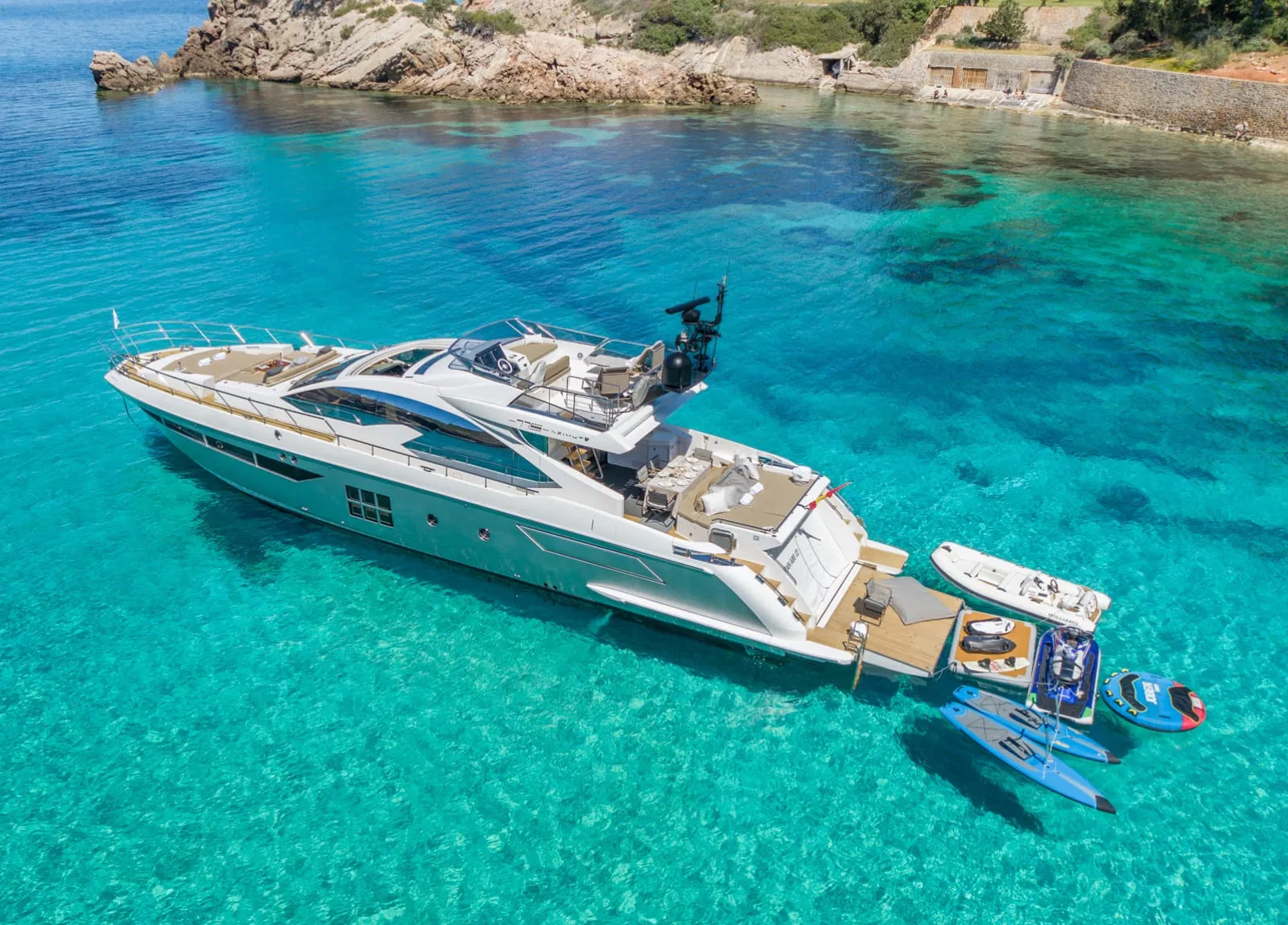 Azimut 77S from the shipyard’s sport series, capable of reaching speeds up to 35 knots, allowing fast cruising between destinations