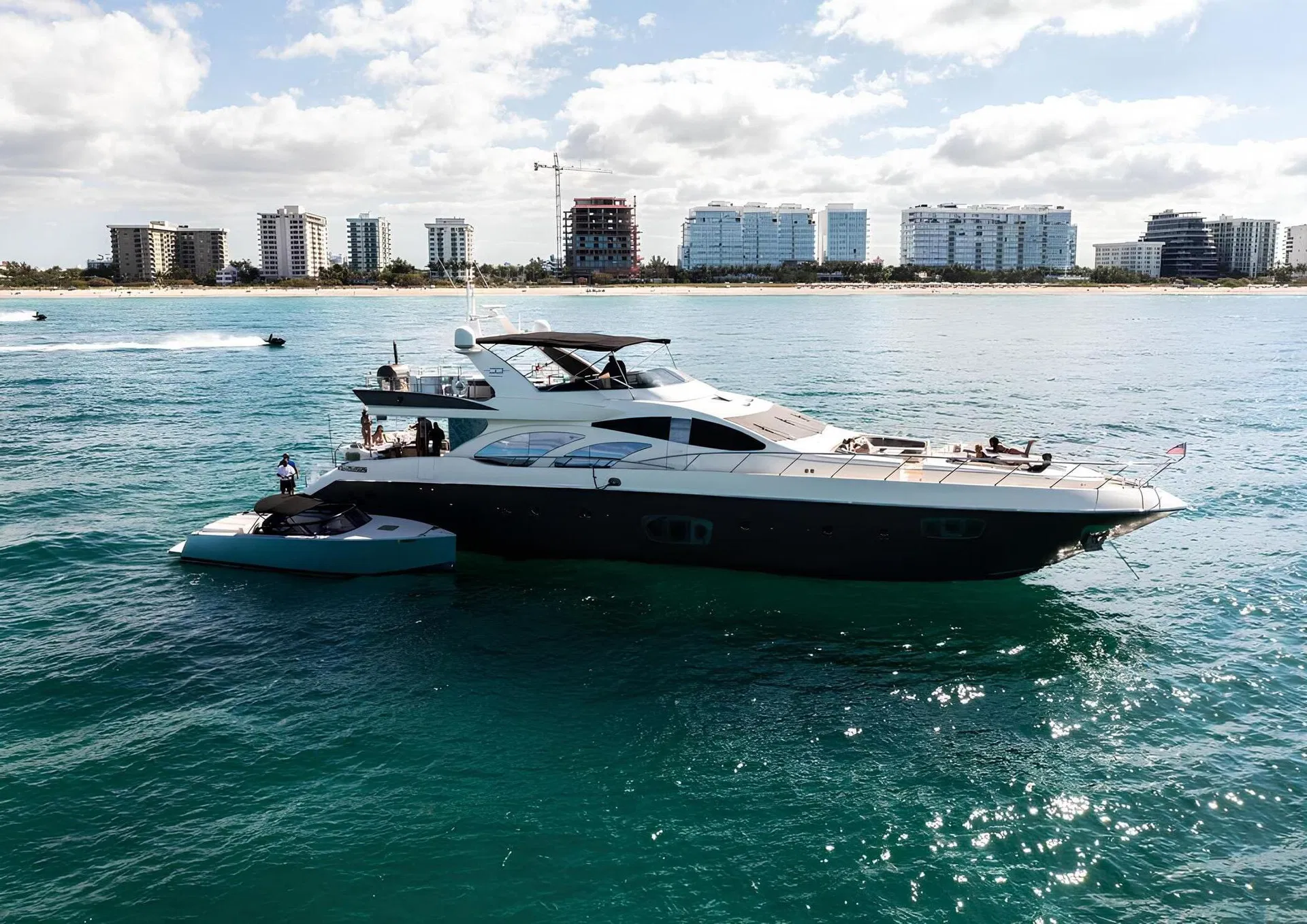 Beach club with direct water access and inflatable swimming platform. Two jet skis, two Seabobs, inflatable slide and a wide selection of water toys.