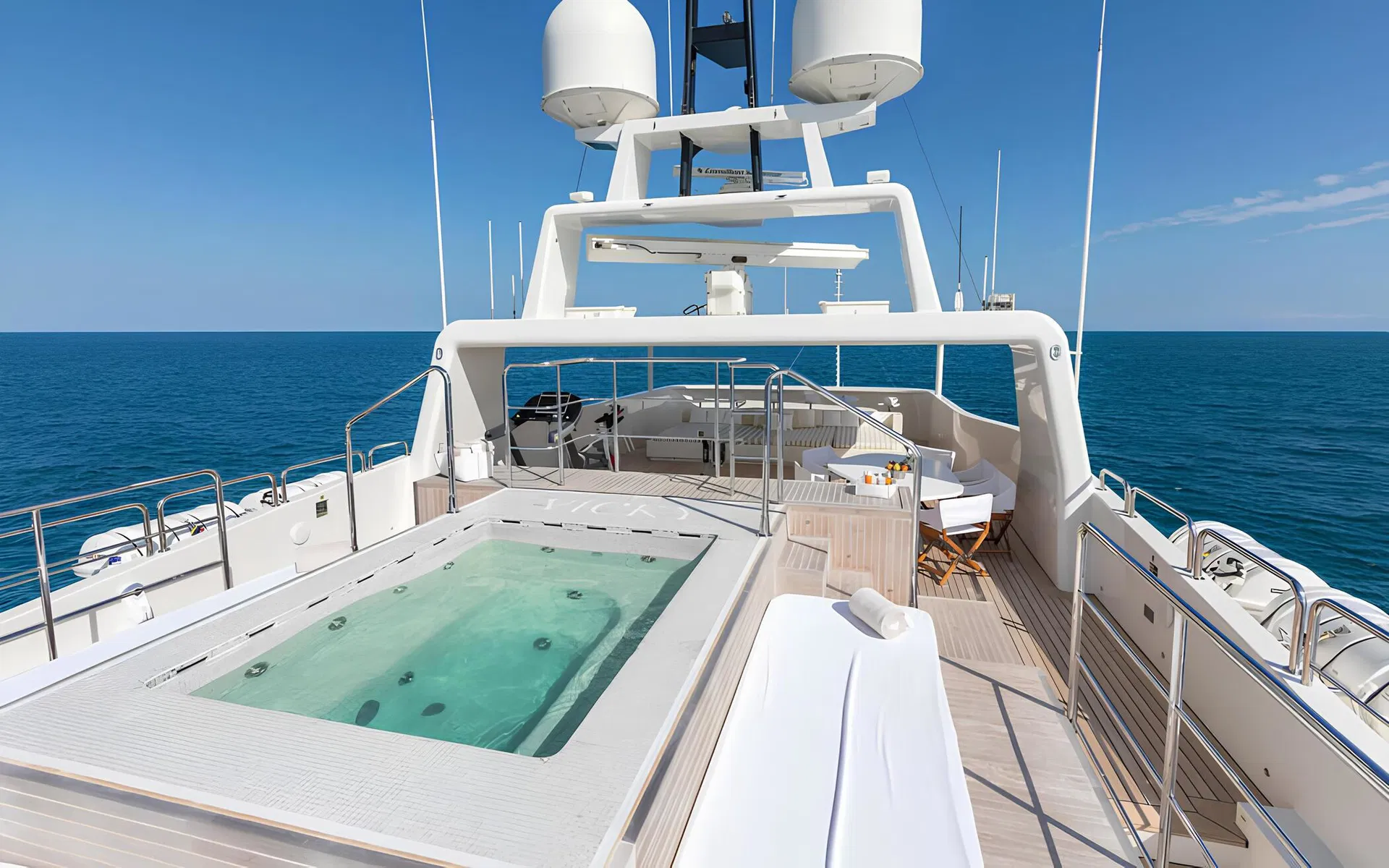 Beach Club at the stern forming the primary relaxation area by the water