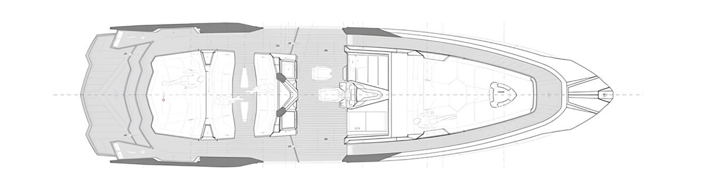 Экстерьер отражает аэродинамические линии суперкаров Lamborghini: острые углы, стремительные силуэты и агрессивные формы. Интерьер выполнен из высококачественных итальянских материалов с акцентом на комфорт и функциональность. На палубе расположены зоны для отдыха и загоарния, а кокпит и открытые пространства обеспечивают удобство на любых скоростях.