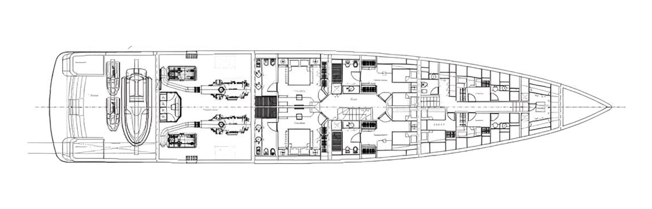 Яхта может разместить до 12 гостей в 6 каютах, включая мастер каюту на главной палубе, 2 VIP-каюты с двуспальными кроватями и 2 гостевые каюты. Каждая каюта оснащена отдельной ванной комнатой, что обеспечивает комфорт и уединение. ASLEC 4 обслуживается командой из 9 человек, что гарантирует высокий уровень сервиса.
