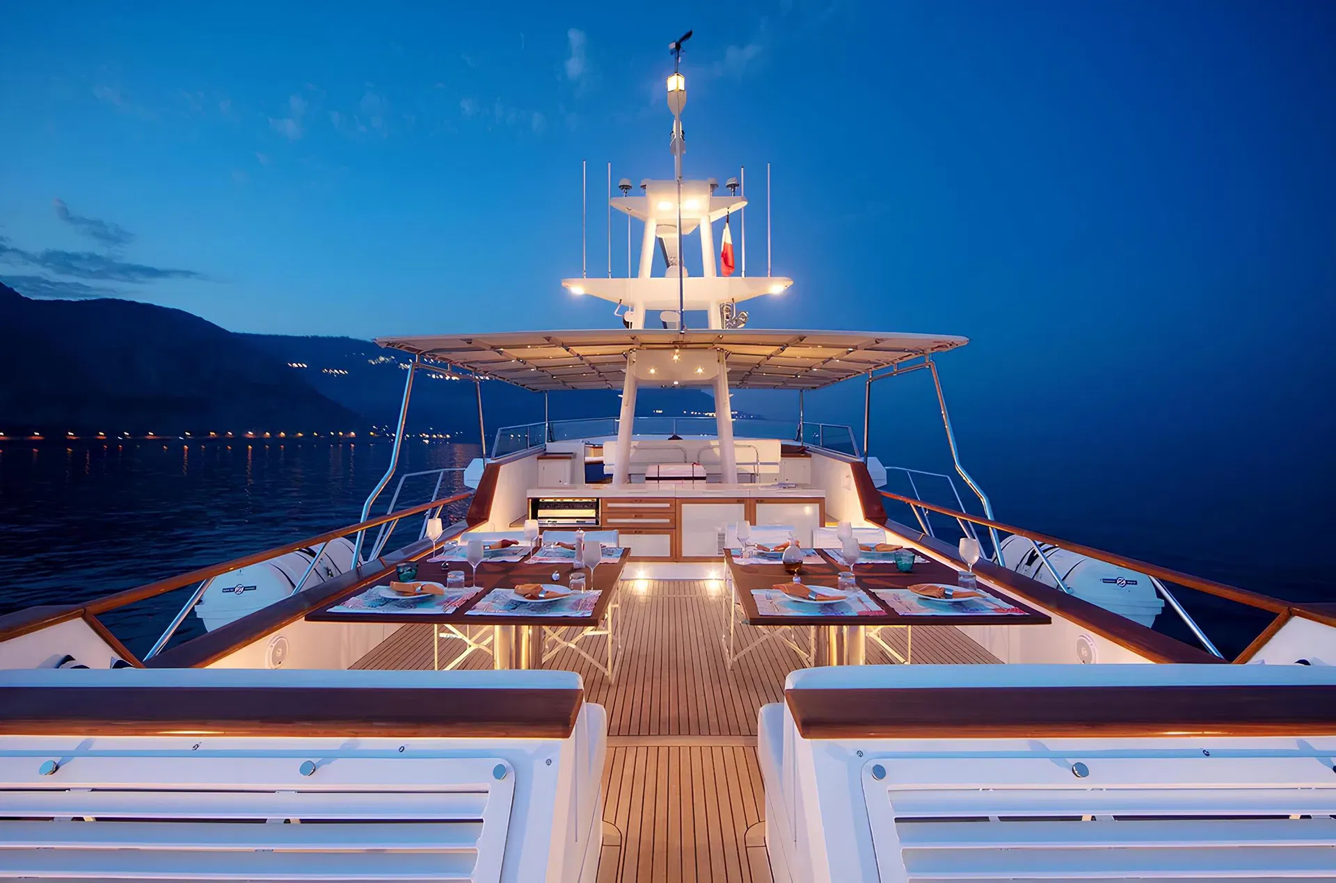 Интерьер в тёплых тонах натурального дерева, отражающий стиль классической моторной яхты