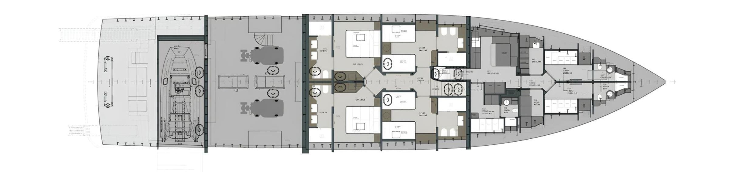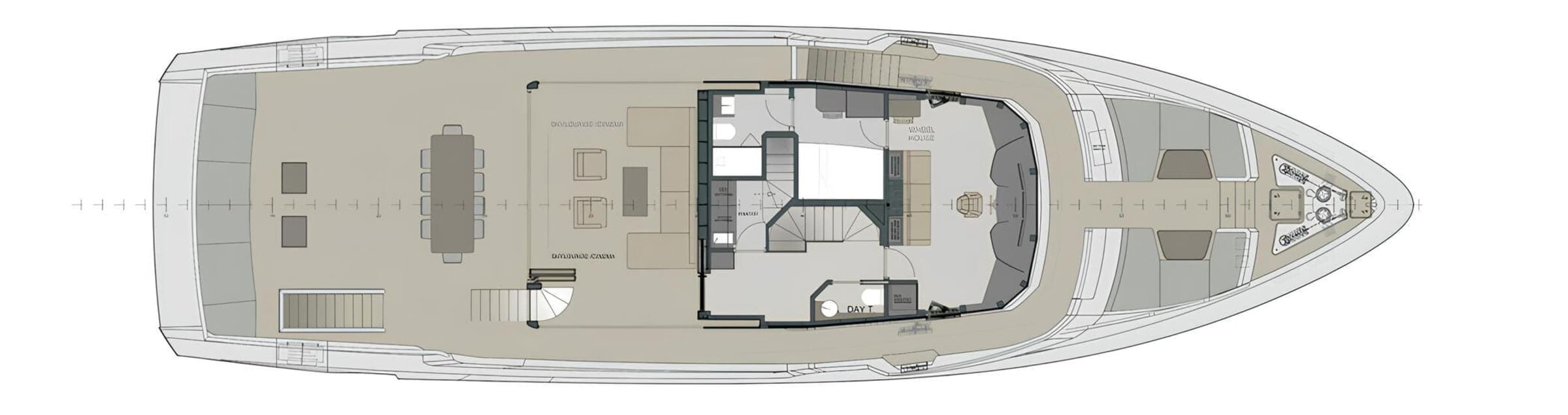 С шириной 8,5 метра и объемом 358 GT, VAYUS предлагает просторные жилые пространства. Яхта может разместить до 10 гостей в 5 каютах, включая мастер каюту на главной палубе с панорамными окнами, гардеробной и ванной комнатой, а также четыре гостевые каюты на нижней палубе, обеспечивающие конфиденциальность и комфорт.