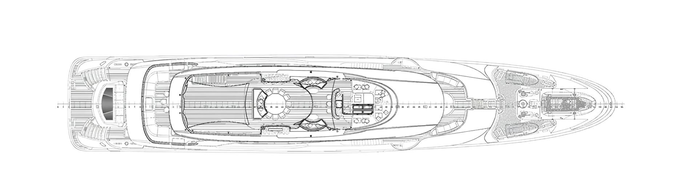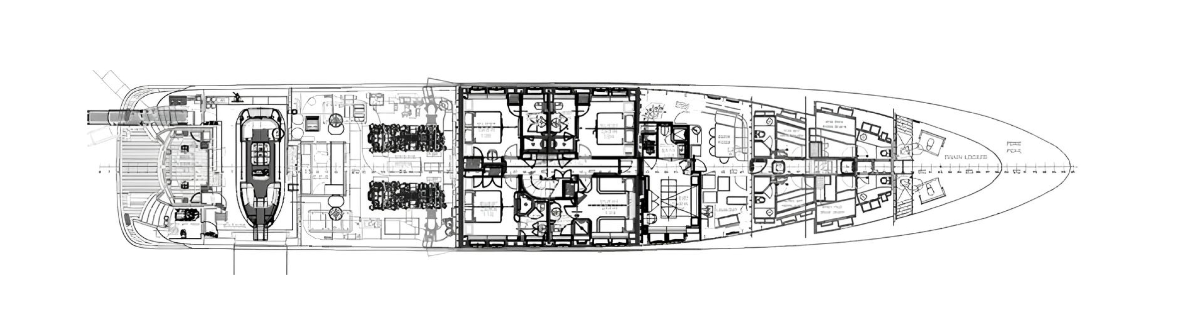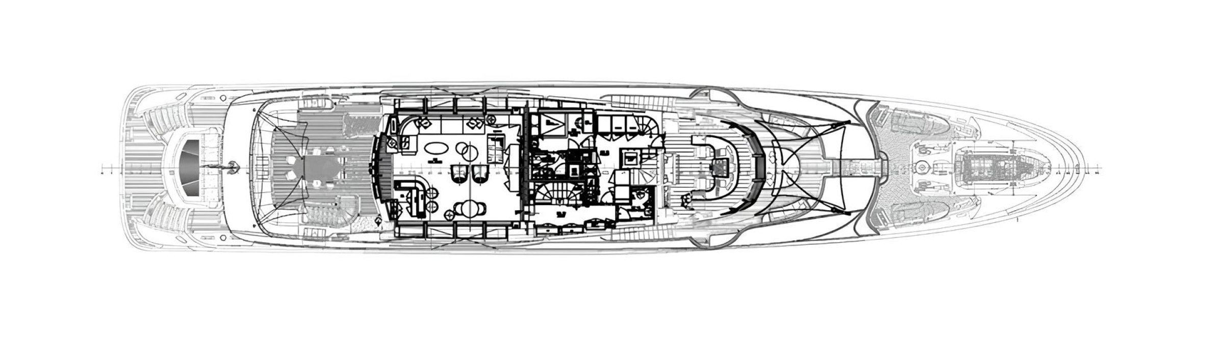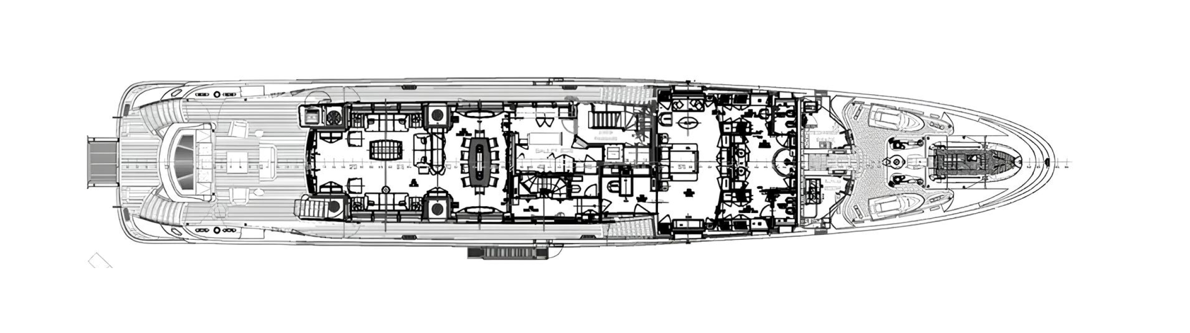 The yacht accommodates up to 12 guests in six cabins, including a full-beam master on the main deck, and is served by a professional crew of 10. Interior spaces include two salons on the main and upper decks, a formal dining area, and a wellness zone.