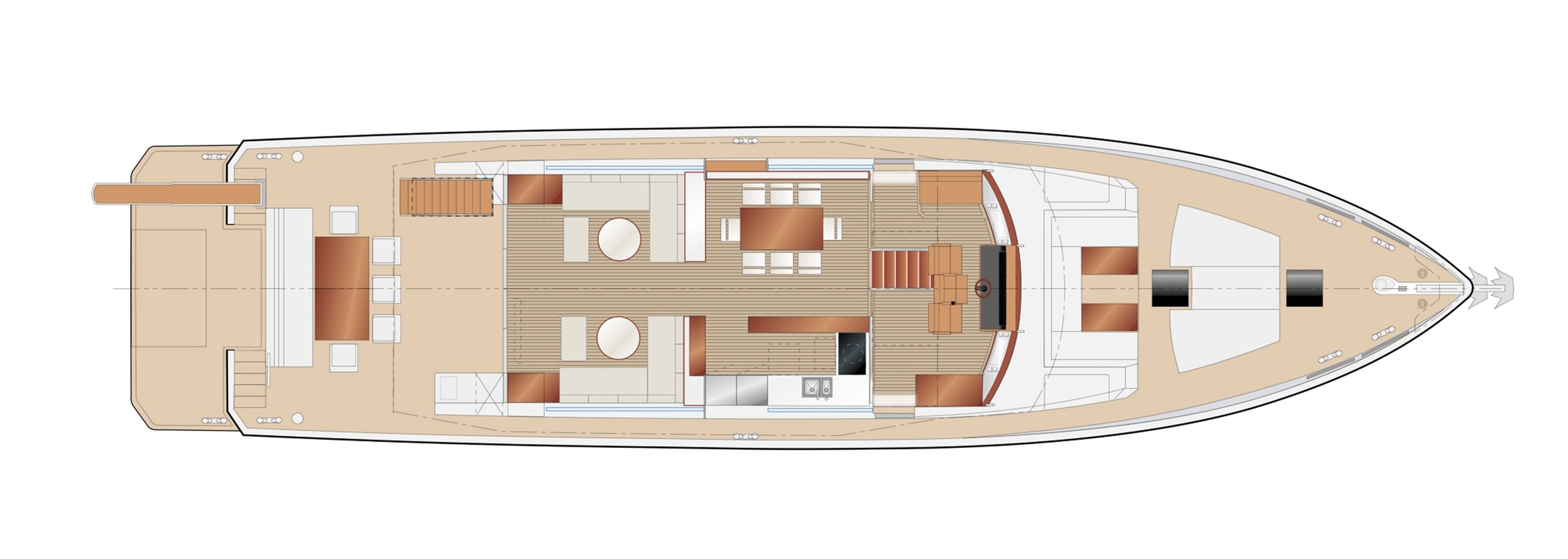 Exterior areas include a cockpit and deck spaces designed for relaxation and entertaining, with flexible configurations for dining and lounging. The overall layout makes BISE I equally suitable for high-speed cruising and comfortable time at anchor.