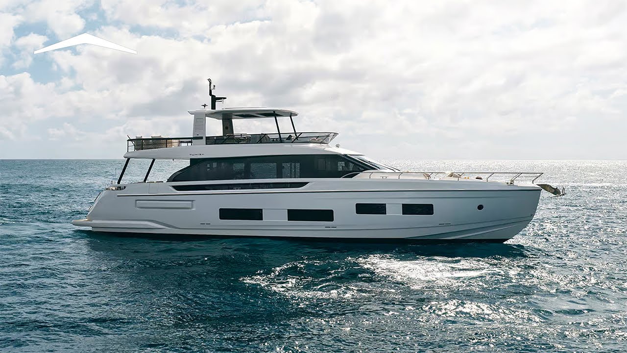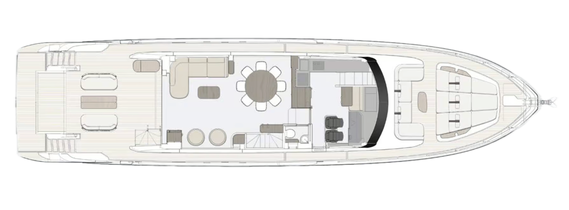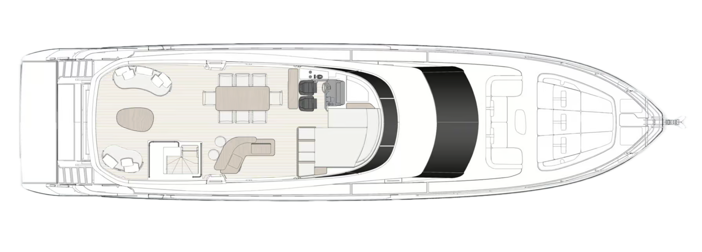 Azimut Fly 82 is a 24.79-metre motor yacht designed for extended cruising, with a clear separation of living areas and a high level of onboard privacy. The exterior styling by Alberto Mancini preserves the dynamic proportions of the Fly series, conveying a sense of motion even at anchor. The GRP hull, incorporating carbon fibre elements, optimises structural weight and enhances overall efficiency.