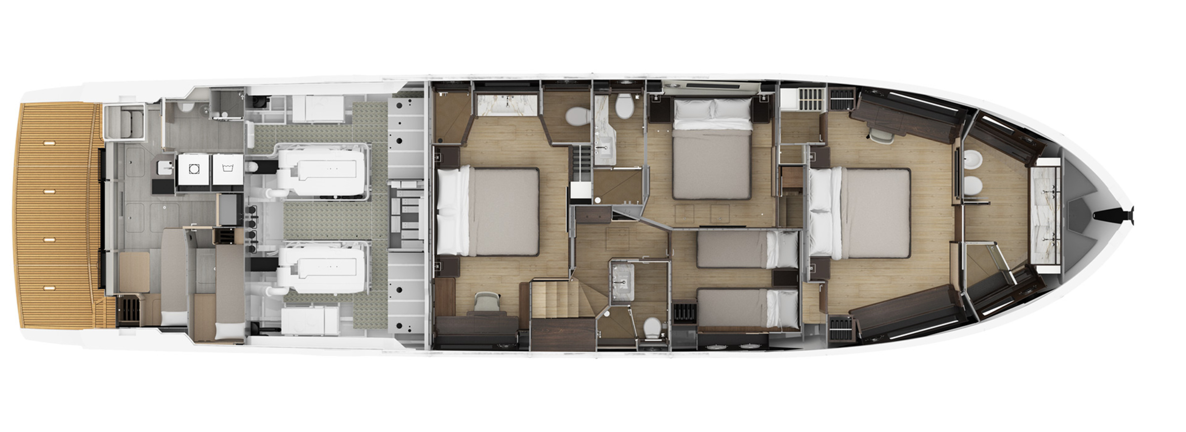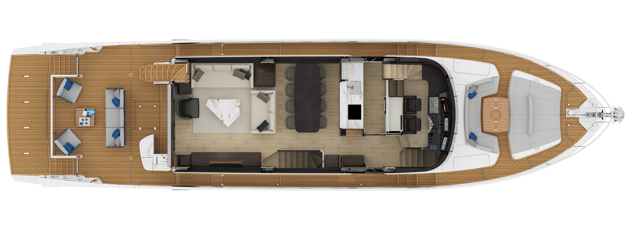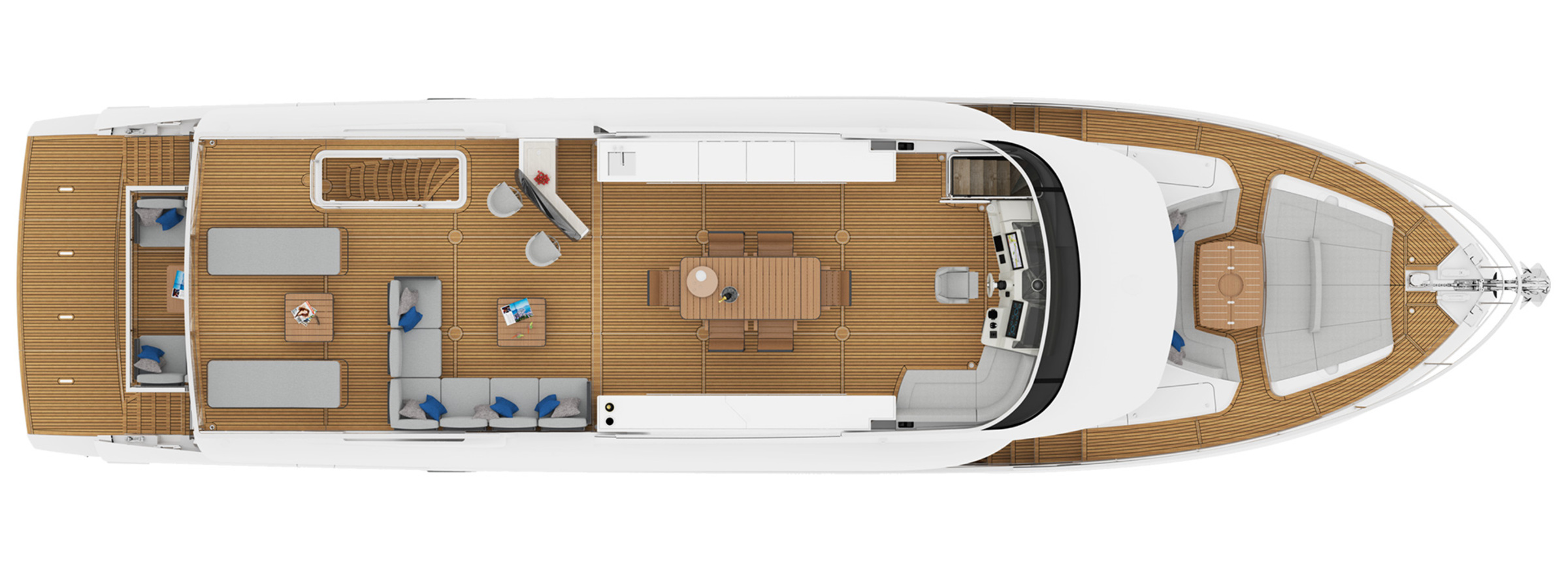 Navetta 75 delivers a thoughtful balance of functional elegance, privacy and long-range comfort - an ideal flagship for owners who value space, efficiency and a contemporary cruising experience.