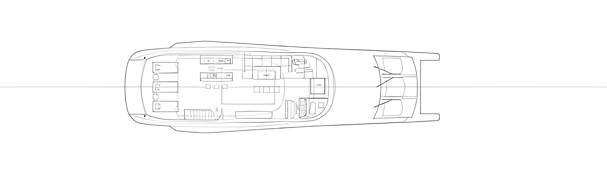Accommodation is for up to 10 guests in five cabins, including a full-beam master suite on the main deck with a spacious bathroom and office. The lower deck hosts 2 VIP cabins and 2 guest cabins, all with en-suite facilities. Crew quarters accommodate up to 9, with separate living areas for privacy and efficiency.