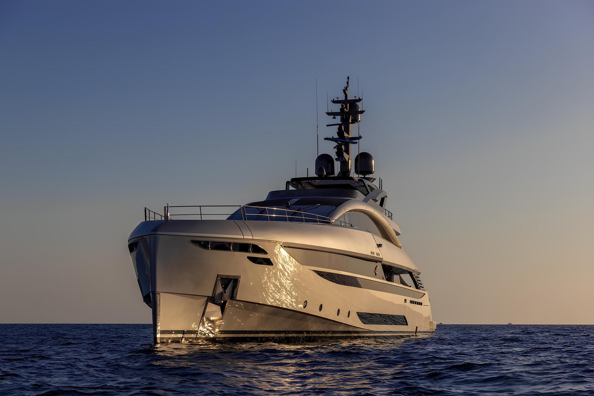 NO STRESS is a hybrid superyacht by Rossinavi, launched in July 2023. Constructed entirely from aluminium, her hull is of fast-displacement type, designed by Arrabito Naval Architects, while the exterior styling is by Enrico Gobbi – Team for Design, featuring panoramic windows and a sleek, sporty profile.
