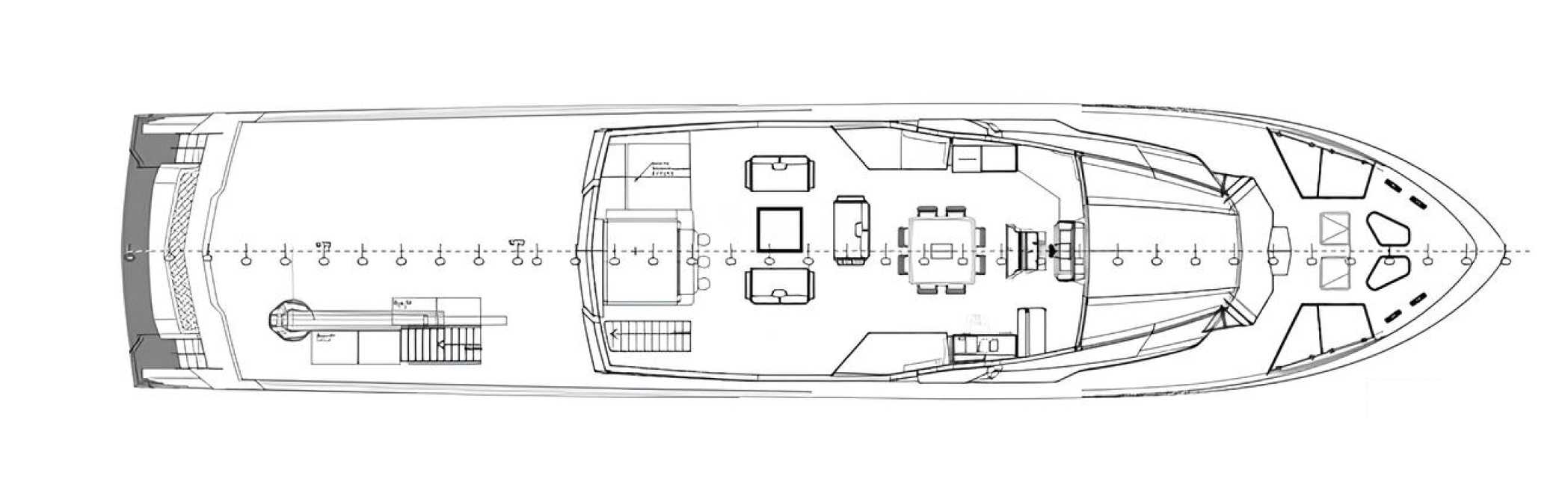 OSCAR also features an extended hardtop, Starlink connectivity, a Technogym and Peloton-equipped gym, an upgraded navigation system, Bang & Olufsen audio, and Miele appliances. The sundeck offers a Jacuzzi, bar, dining for twelve, and a secondary helm station, while the beach club provides toy storage and a dayhead.