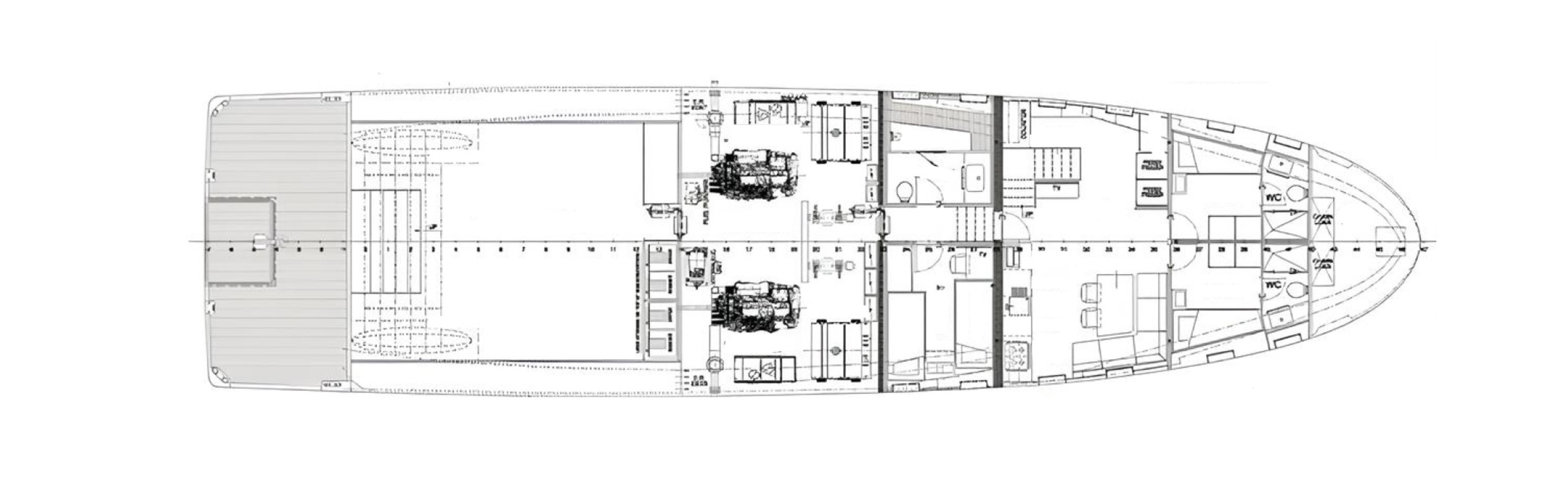The layout accommodates up to four guests across two cabins, including a VIP cabin, along with dedicated accommodation for crew and technical staff. Interior spaces include a main saloon and practical living areas designed for extended stays on board.