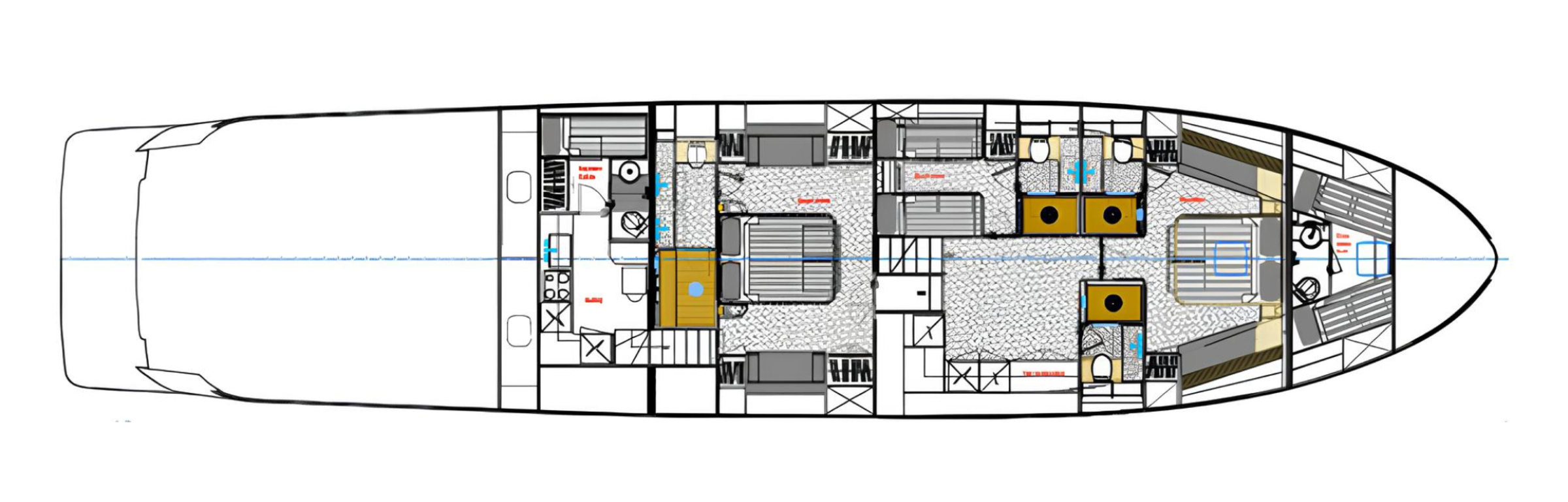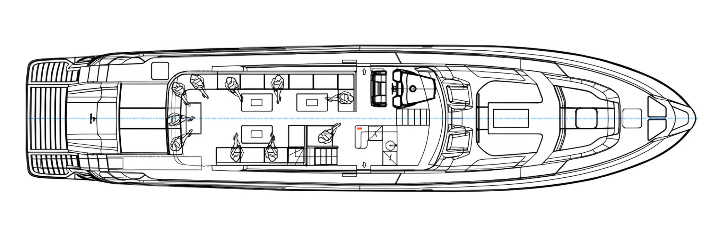 Inside, SEXY ME showcases the artistry of Italian craftsmanship: marble, travertine, and custom parquet floors create an interior that is both contemporary and timeless. Accommodation is for guests in three cabins, including a full-beam lower-deck owner’s suite, a spacious VIP cabin, and a twin cabin, with two dedicated crew cabins.