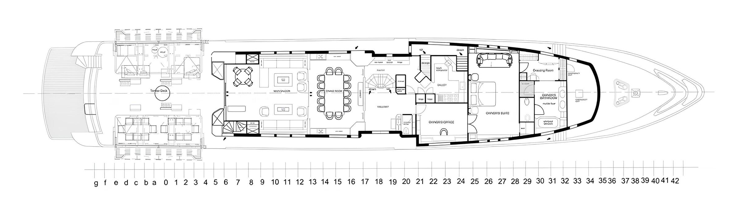 Outdoor decks were completely reimagined: the aft deck features drop-down balconies providing direct sea access, and the sundeck has been reinforced for helicopter landings. Modular furniture, flexible layouts, and teak finishes create functional, contemporary outdoor living spaces.