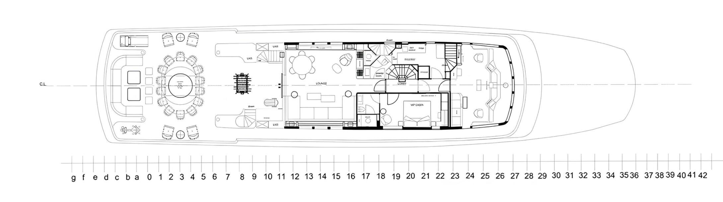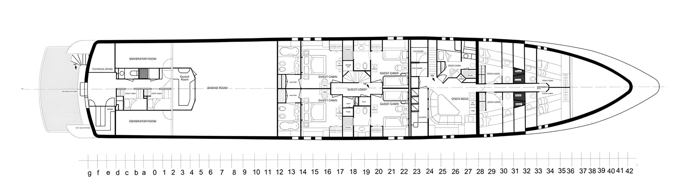 With a steel hull and aluminum superstructure, SOLAFIDE combines structural reliability with modern systems. She cruises at 14 knots, reaches a maximum speed of 21 knots, and has a range of 4,600 nautical miles, remaining within the under-500 GT category while providing generous deck and interior volumes, ideal for private use or charter operations.