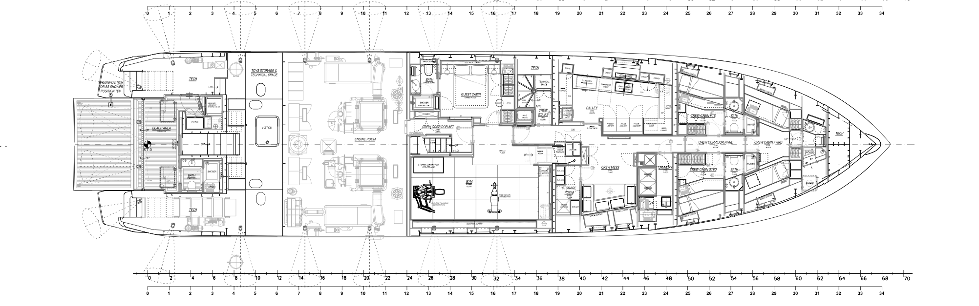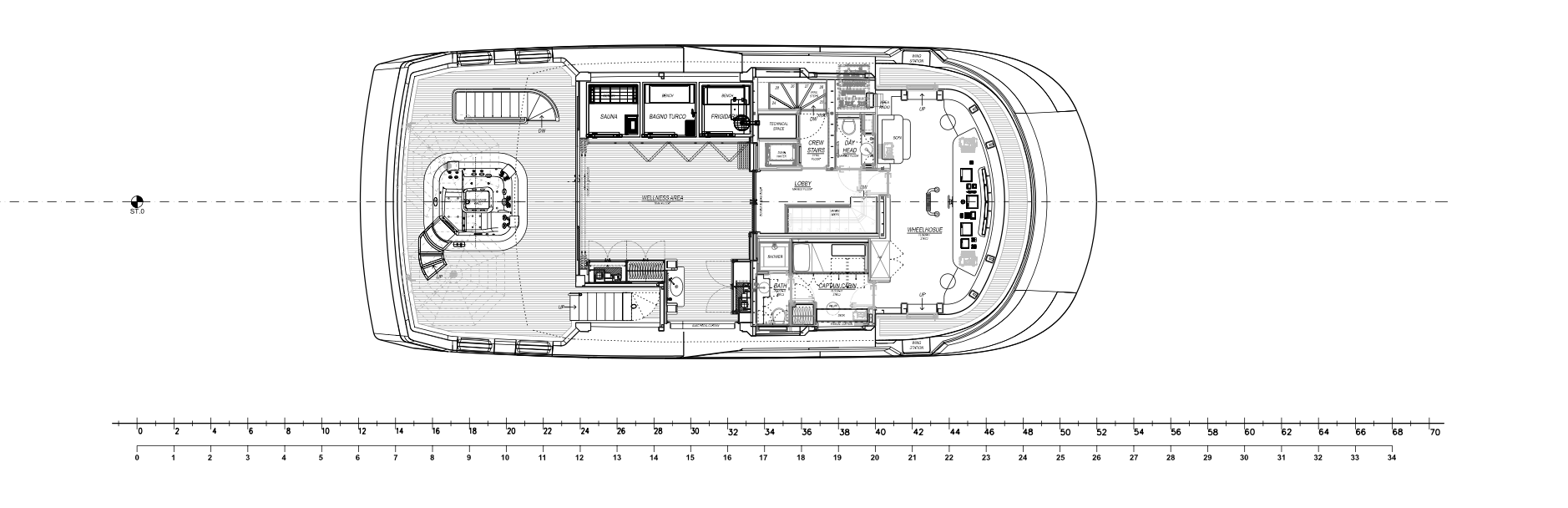 Built with a steel hull and aluminium superstructure, TURKS is powered by twin MAN V12 diesel engines of 1,400 hp each, delivering a maximum speed of 14 knots, a cruising speed of 12.5 knots and a transoceanic range of 5,000 nautical miles. She has a beam of 8.6 metres and a draft of 2.5 metres.