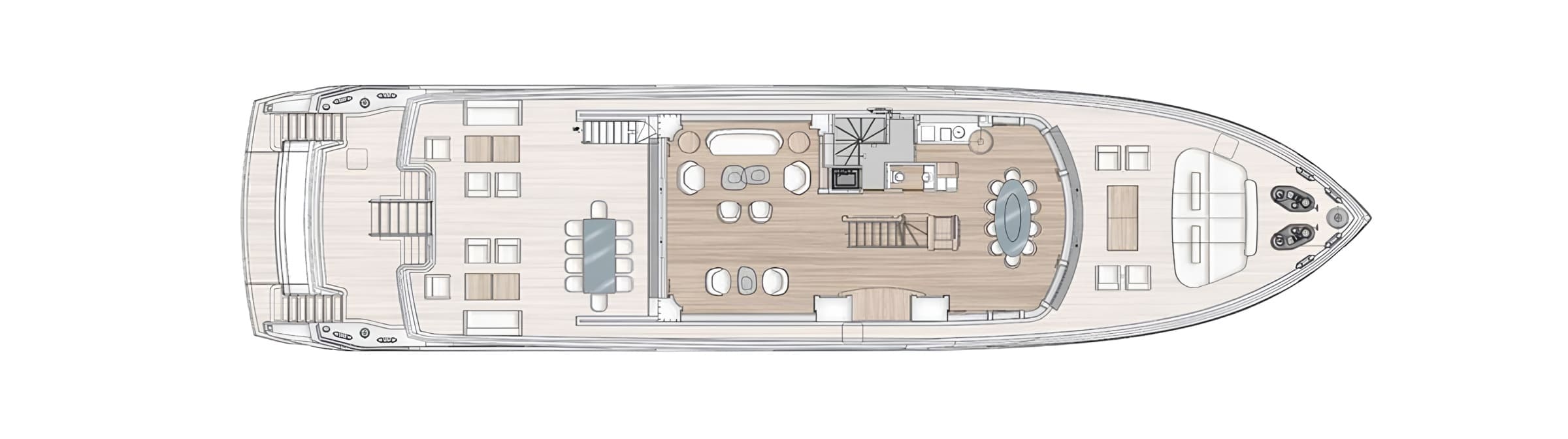 TURKS is a 36.5-metre Benetti BYOND 37 motor yacht, delivered in 2023 as the second hull in the series and showcasing Benetti’s fully bespoke approach to superyacht construction. Every detail was custom-specified – from the grey hull paint and UV-protected glazing to the lightweight Eulithe furniture on the sundeck.