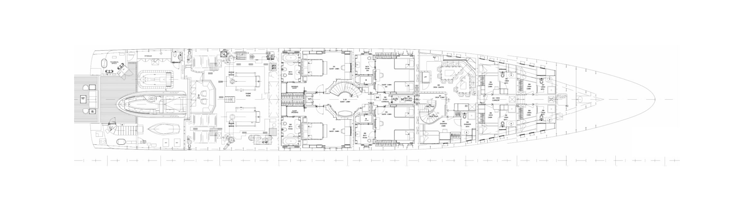 Accommodation is provided for 12 guests in 6 cabins, including a two-level full-beam master suite on the main deck, with four guest cabins located on the lower deck, all with en-suite facilities.