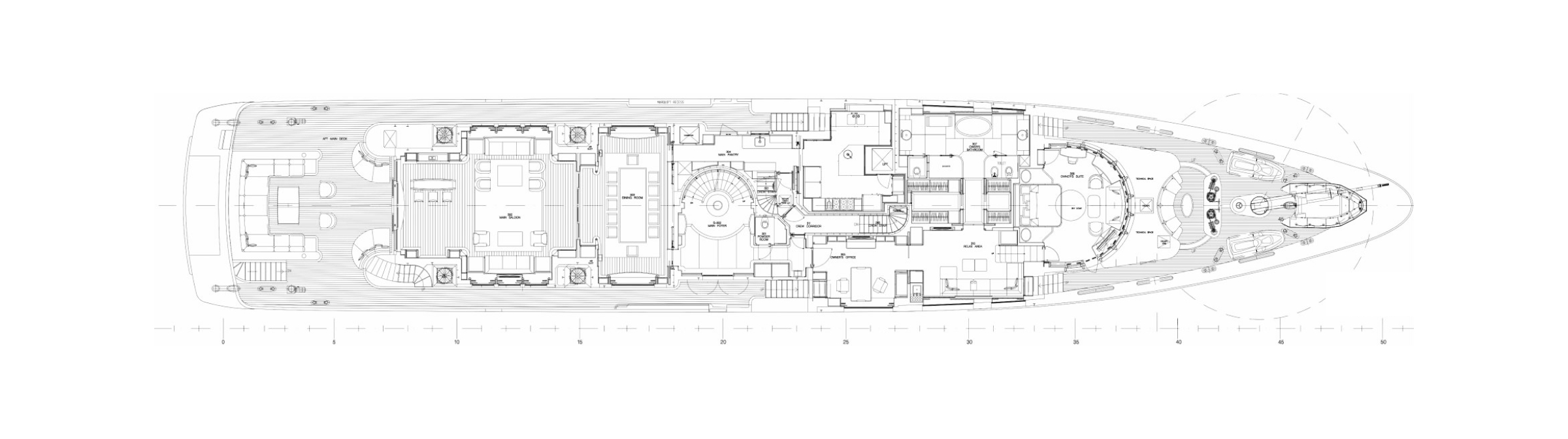 Spacious exterior decks include a large sundeck, beach club, multiple lounges and dining areas, as well as a touch-and-go helipad.