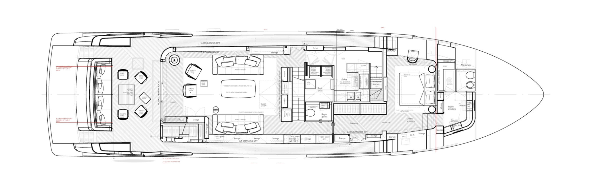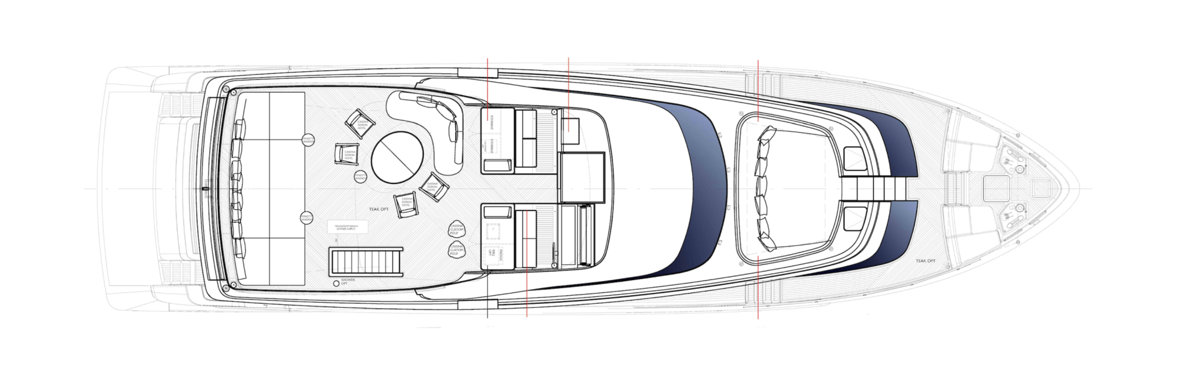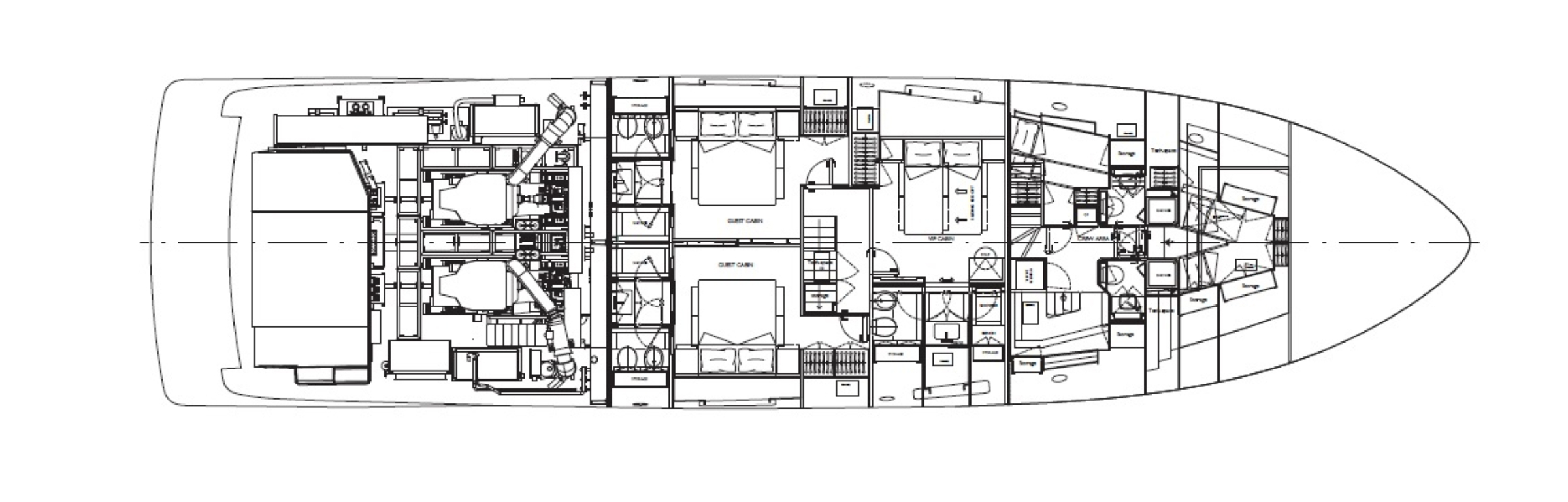 AKIRA accommodates up to 8 guests in four cabins. The main deck features the full-beam master suite, while the lower deck hosts two VIP cabins and one convertible cabin that can transform into a private lounge area when needed. Each cabin includes an ensuite bathroom, offering both privacy and functionality.