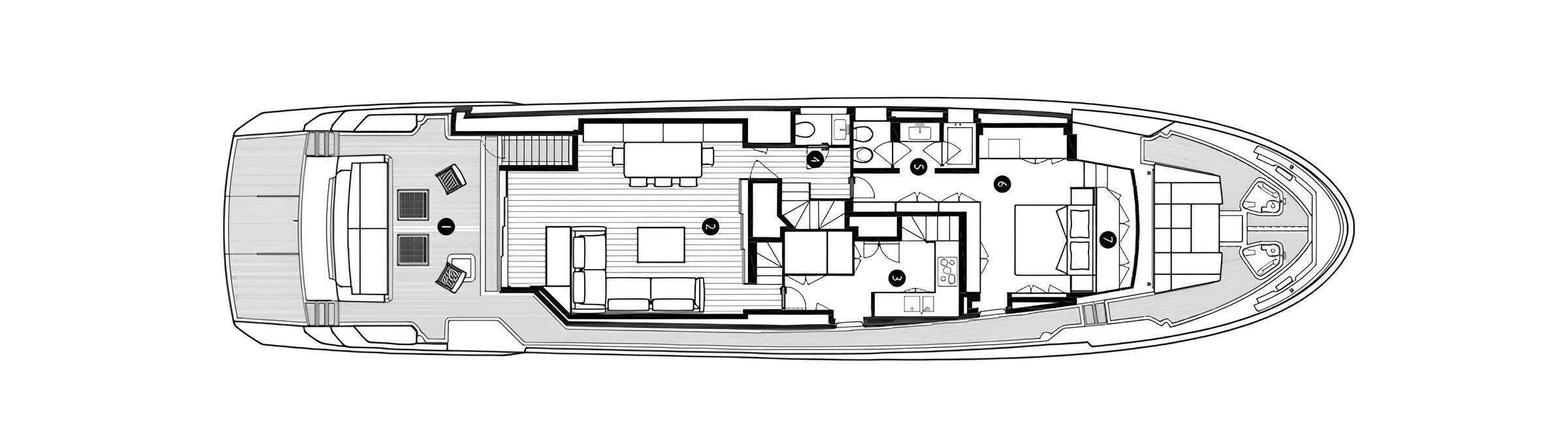 Onboard service is provided by a chef and a crew of 4, ensuring impeccable service and satisfaction of all guests' needs.