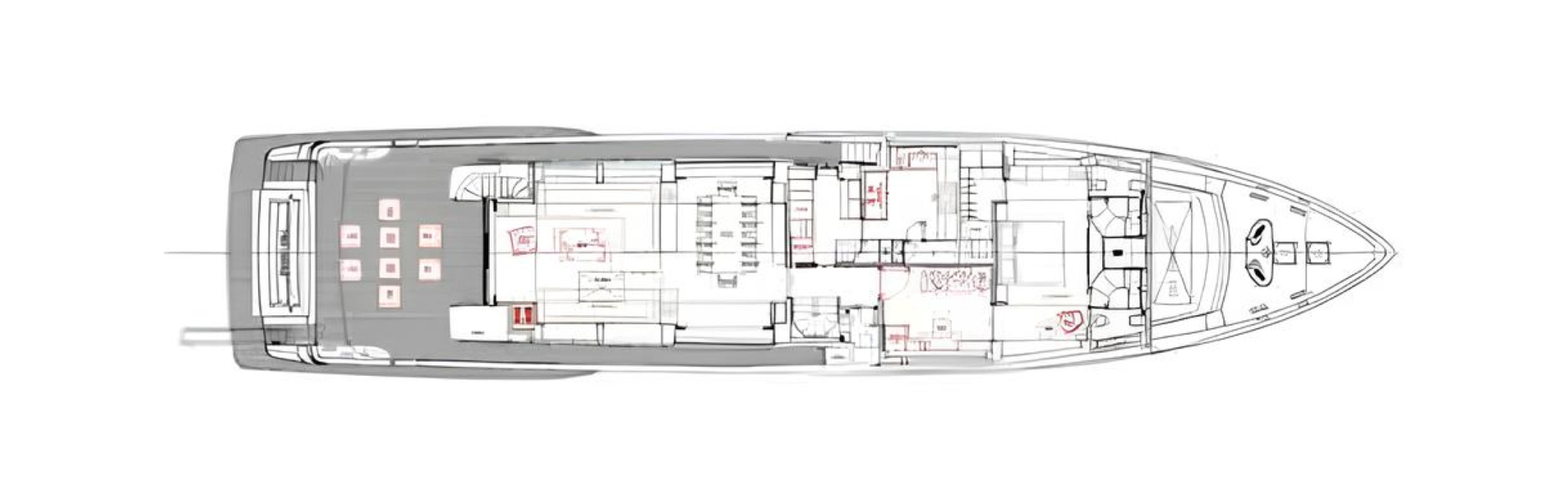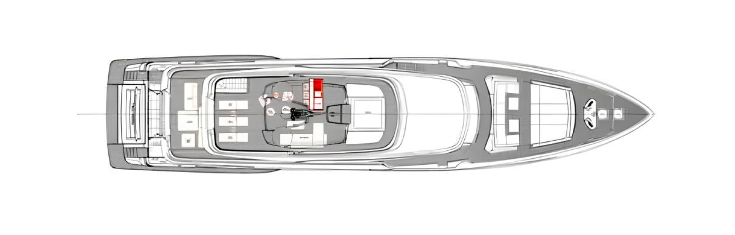 With a cruising speed of 12.5 knots and a top speed of 15 knots, EROS is powered by two 1,400-horsepower MAN engines. Fuel consumption at cruising speed is 230 liters per hour.