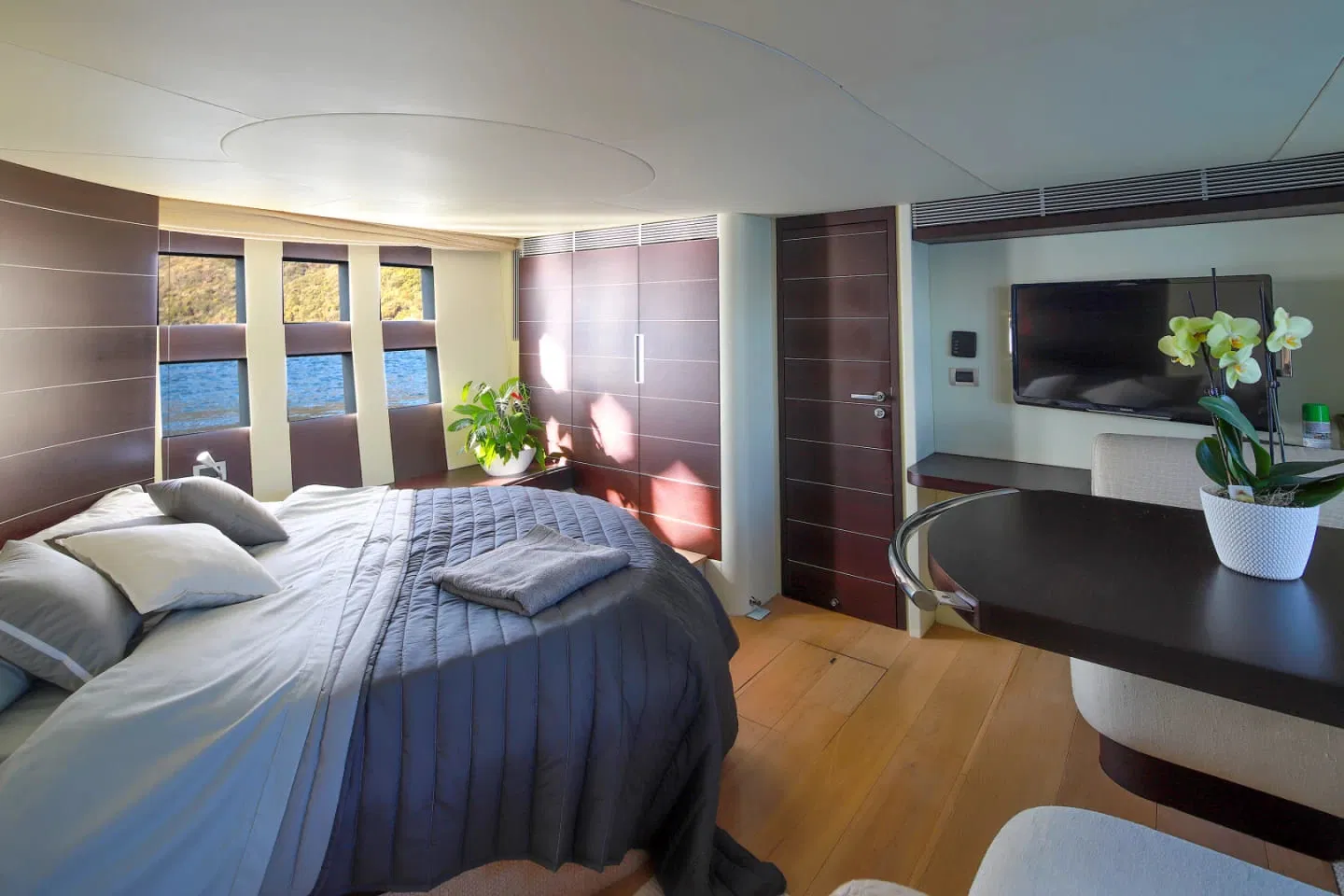 Full-beam master cabin featuring a sofa and private relaxation area