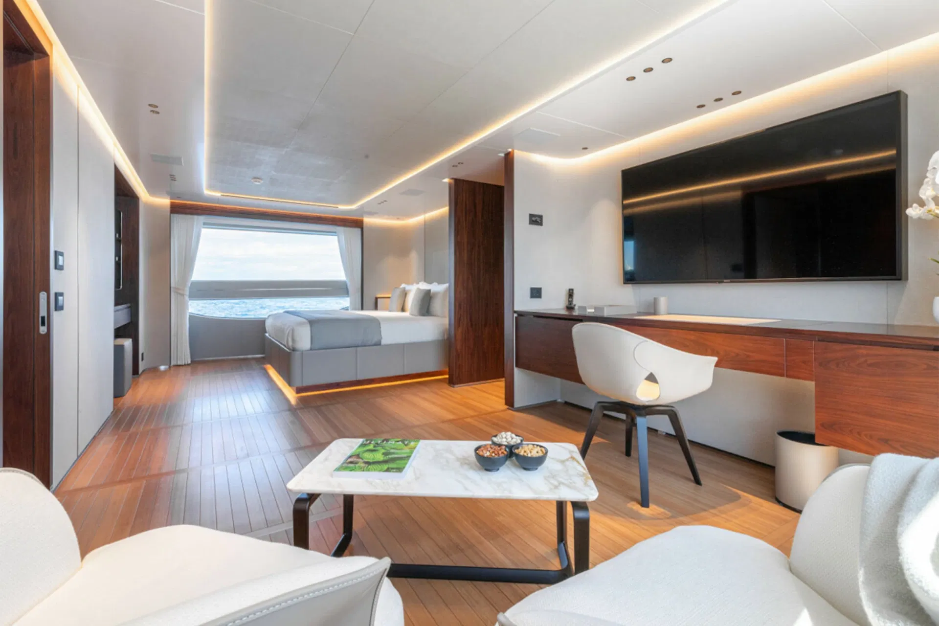 Master suite on the main deck with private office and walk-in wardrobes