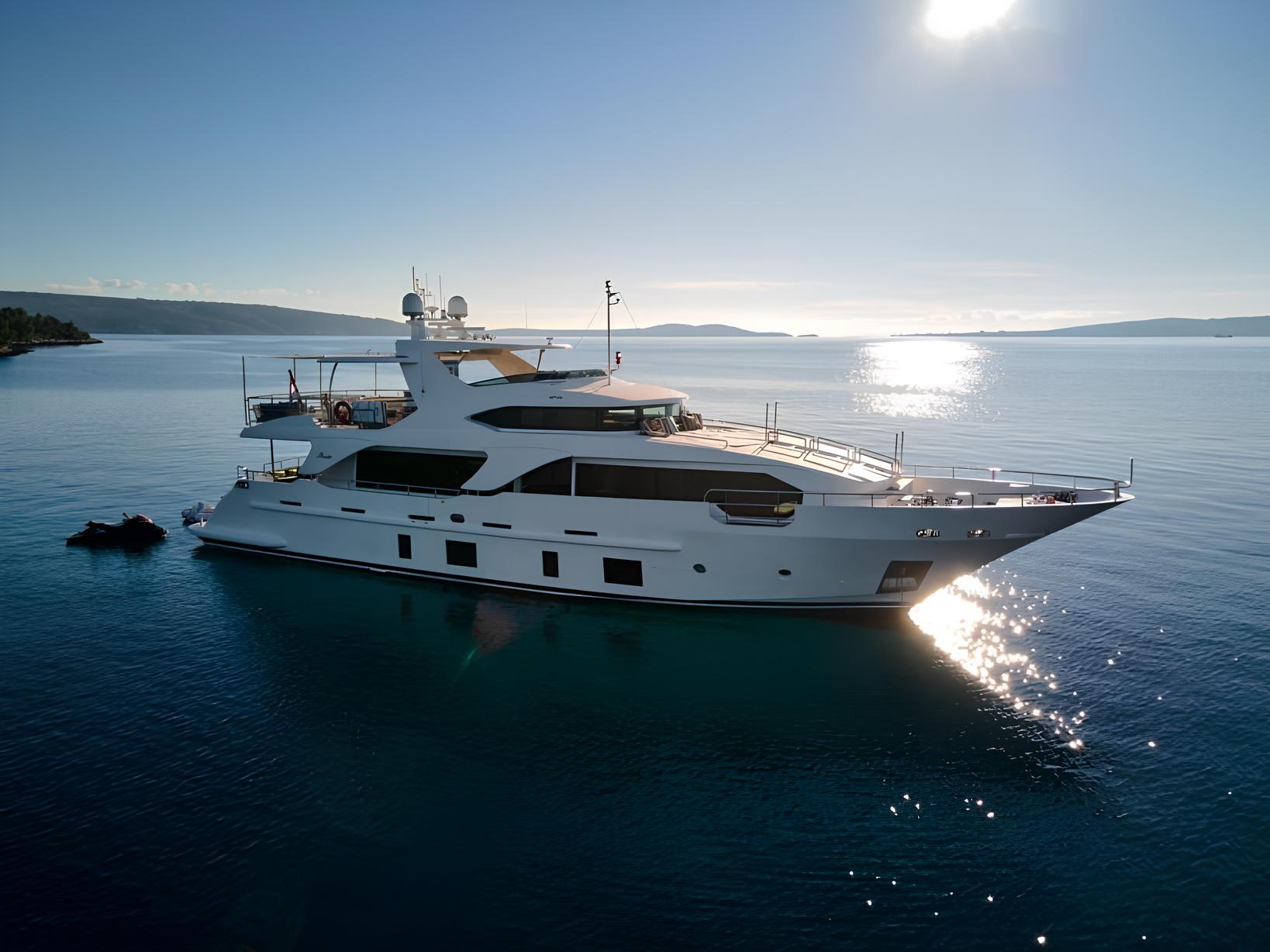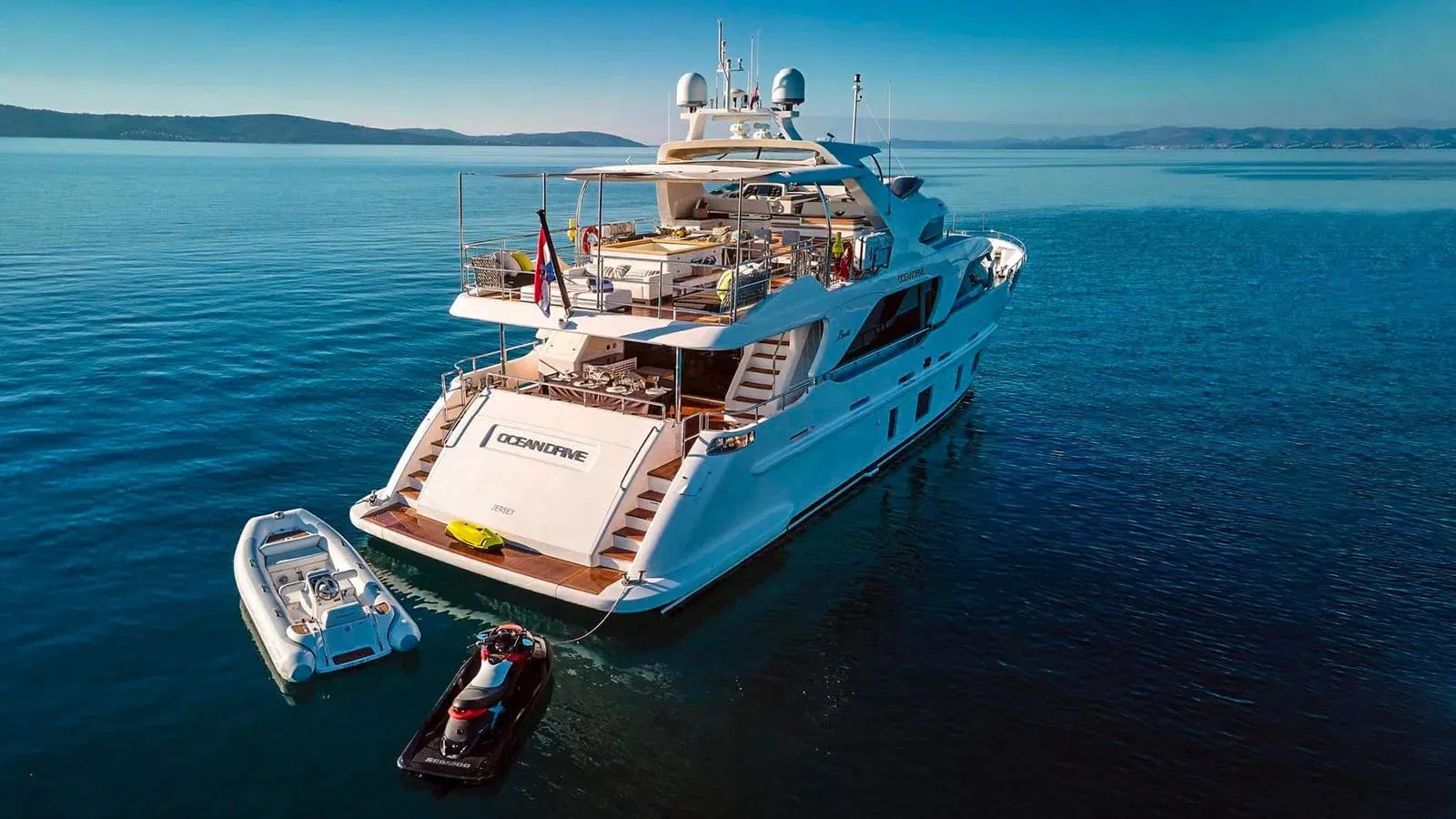 Flybridge with sliding hardtop, jacuzzi and sunpads