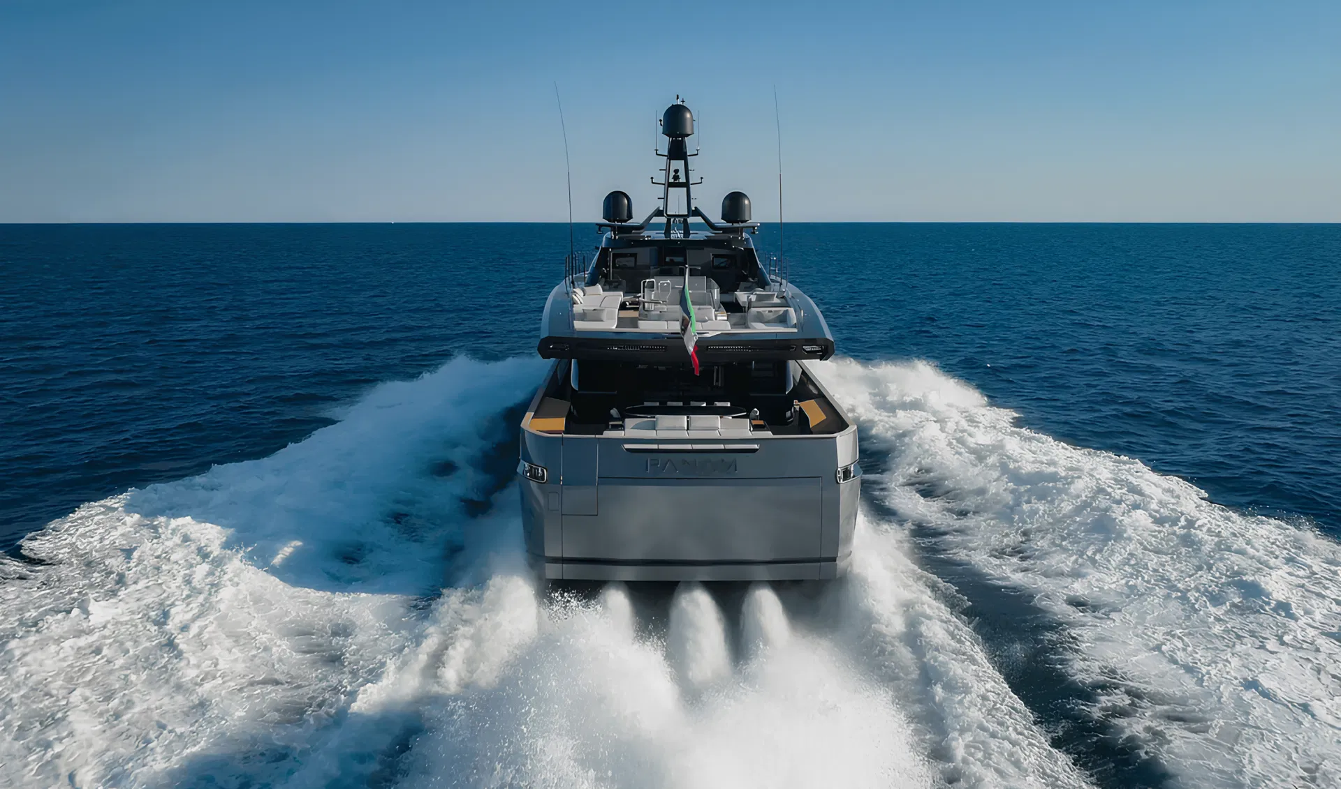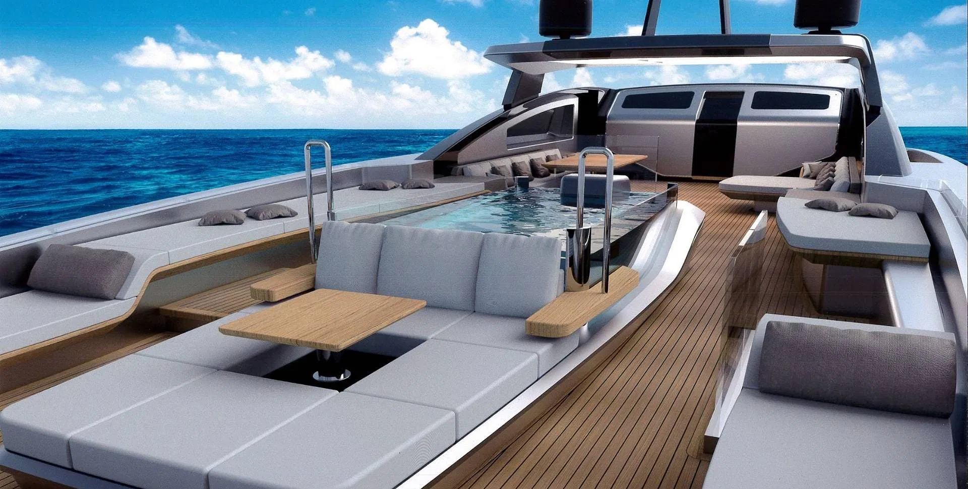 Flybridge with integrated jacuzzi and full upper deck configuration