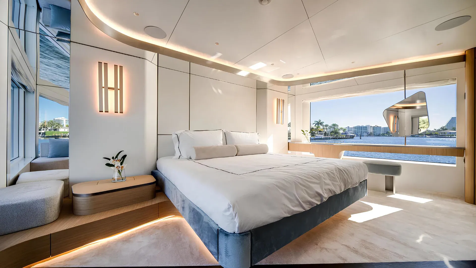 Full-beam master cabin with oversized panoramic windows